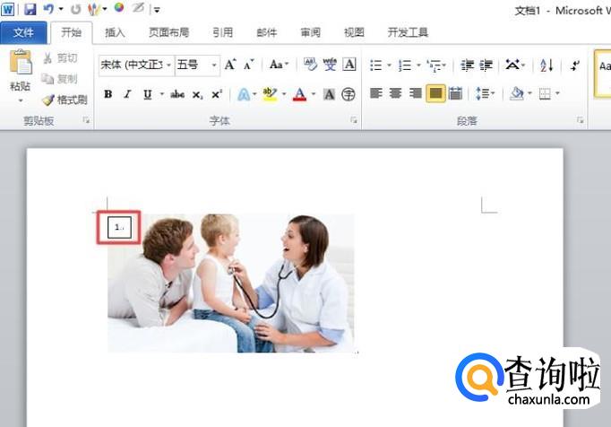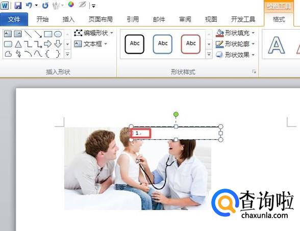 之后在文档中就会插入一个文本框了,我们在里面输入编号1;