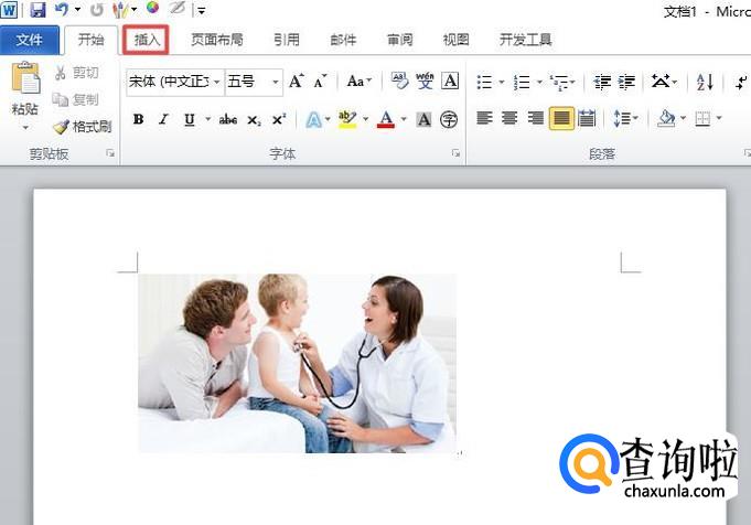 首先,我们打开一个带有图片的word文档,然后我们点击工具栏中的插入;