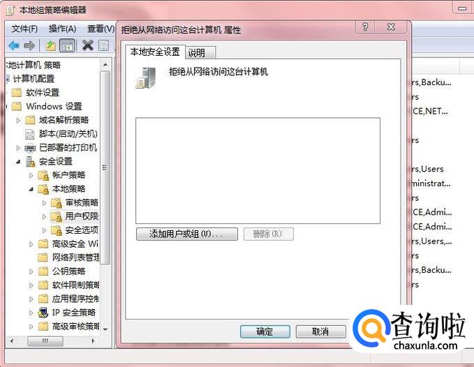 点击完以上步骤之后,会出现如下图,找到“拒绝从网络访问这台计算机”点击