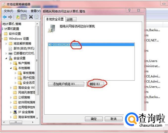 在新打开的界面中将guest用户或组删除再应用