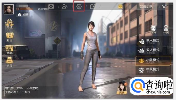 首先进入游戏,在大厅内点击设置按钮,下图中框起来的位置。