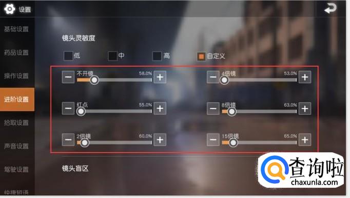 进到进阶设置直接显示的是不开火状态下的灵敏度设置,往下拖动可以找到开火镜头的灵敏度,就是一边开枪一边移动镜头的灵敏度设置。