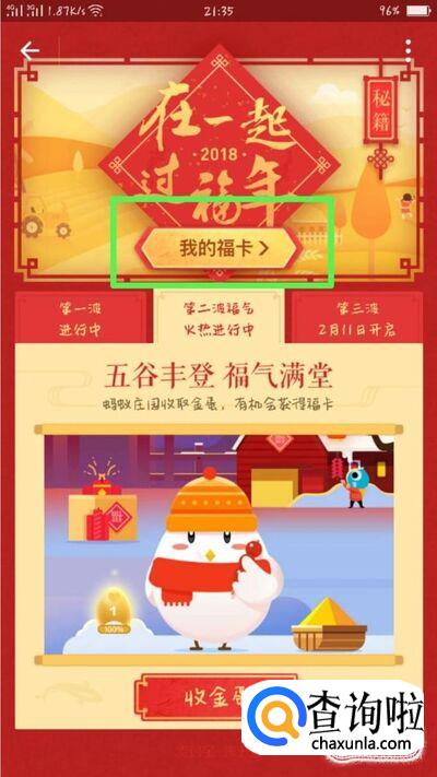 点击支付宝封面的“点击进入”,就可以进入福卡界面了。