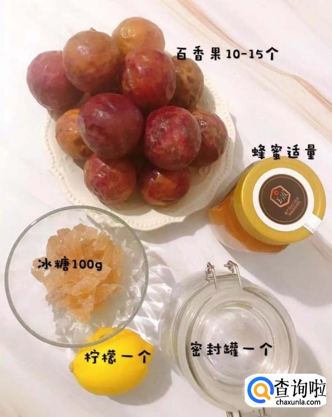 首先我们要准备好我们要用到的所有材料,如下图所示。小贴士:百香果十个左右,冰糖100克,柠檬一个,密封罐一个,蜂蜜适量。