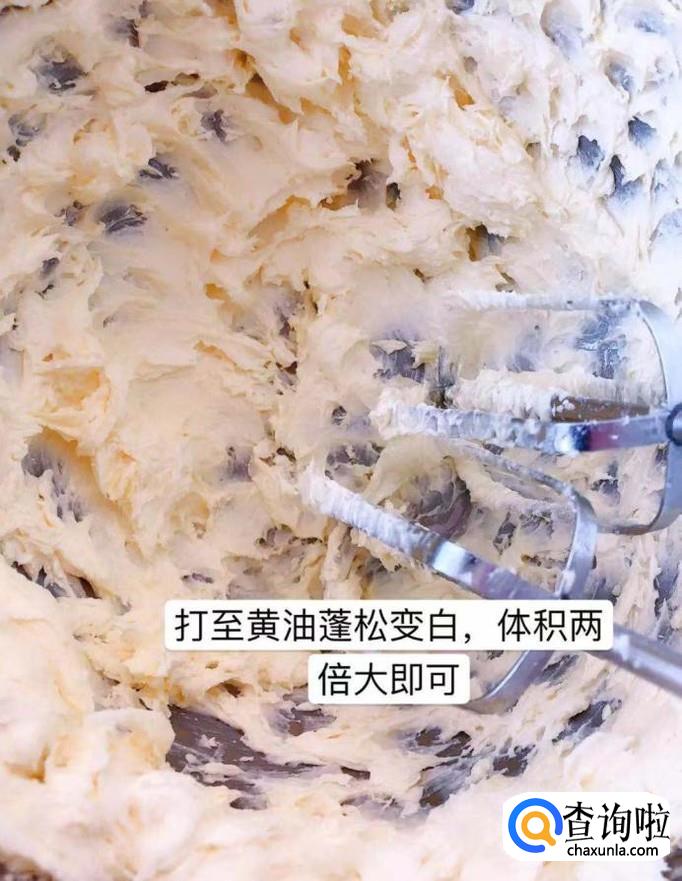 打到黄油蓬松变白,体积是原来的两倍大就可以了。