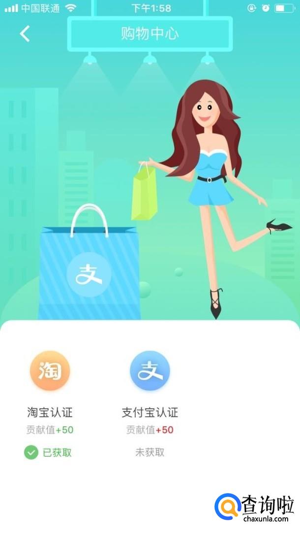例如:点击购物中心进行进行认证,会看到有淘宝认证,支付宝认证
