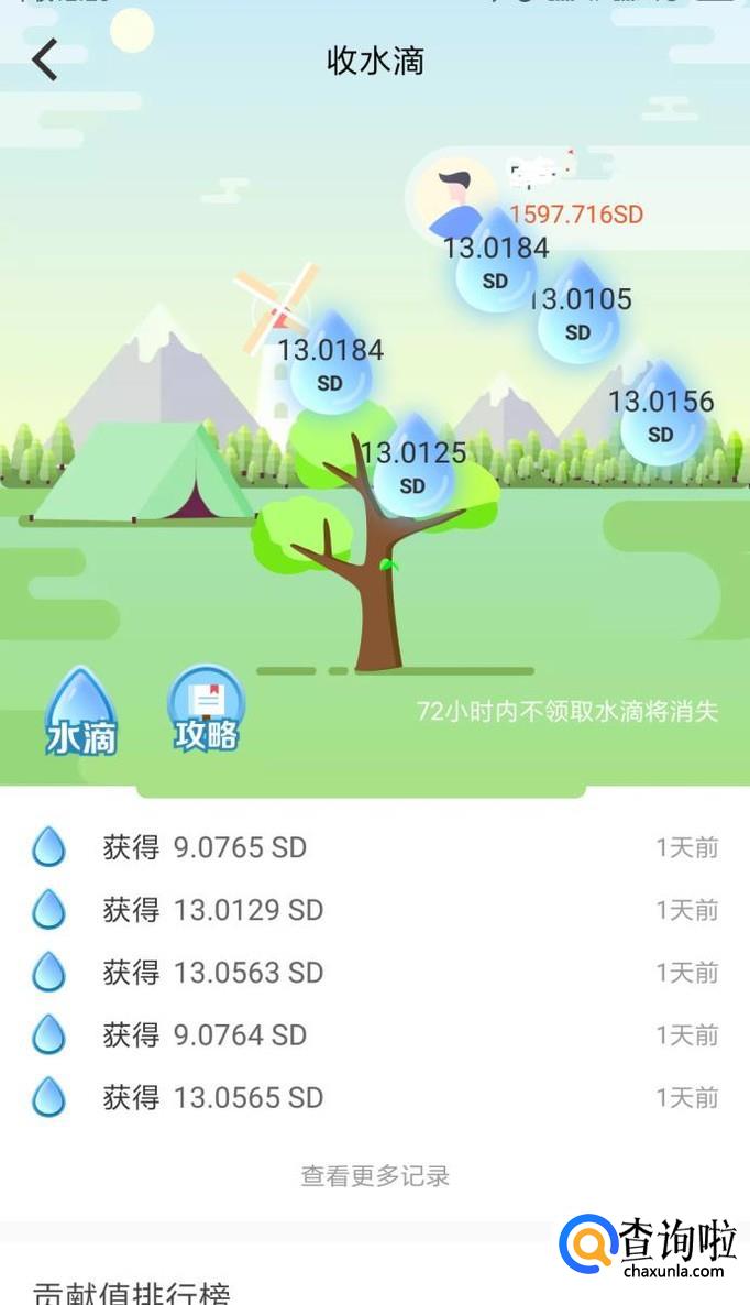 贡献值:用户的所有网络行为都奖励贡献值,贡献值是生长水滴的主要因子。