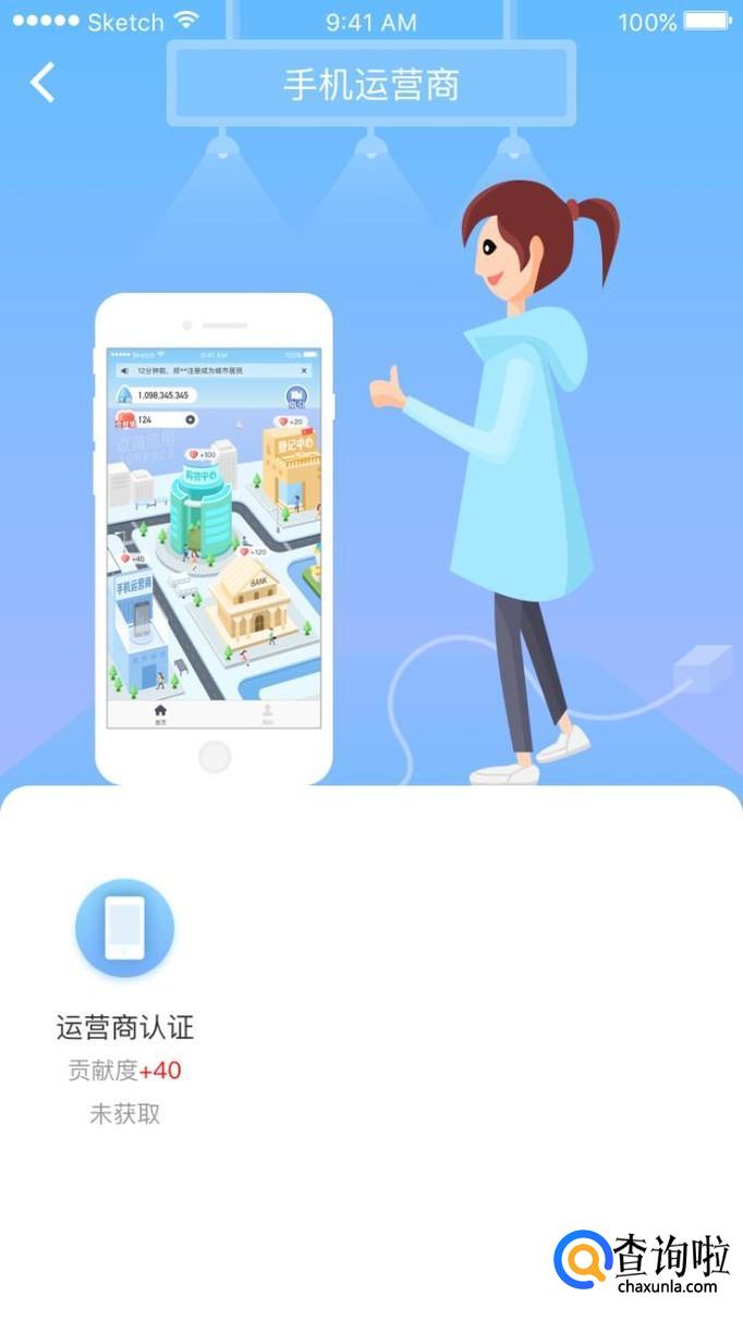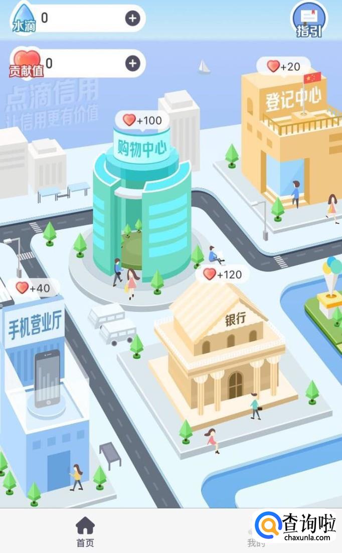 在首页的F-city中看到的购物中心、手机营业厅、银行以及登记中心的建筑物都能点击的,点入看到的认证行为都奖励贡献值,贡献值就像原力。