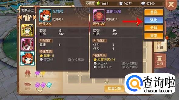 点击魂卡之后即可查看魂卡详情,点击即可进行分解、装备以及强化等操作。