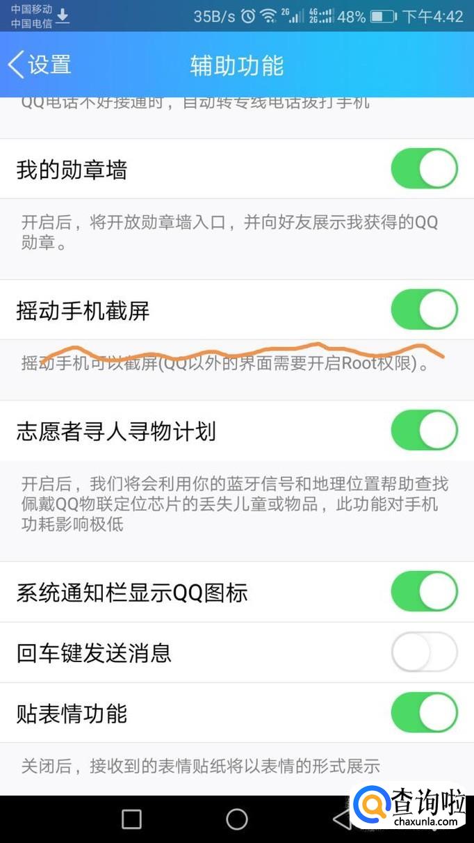 可以使用QQ摇一摇截屏,但是在QQ以外的界面需要开通权限。