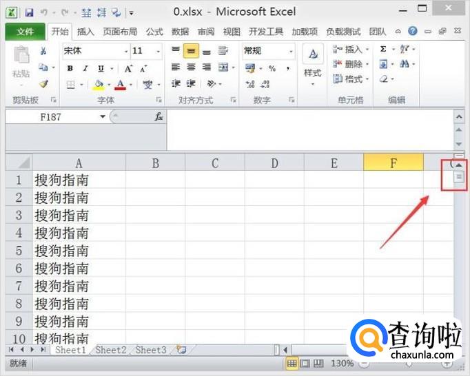 打开表格文件之后可以看到右侧的垂直滚动条很短,如图所示: