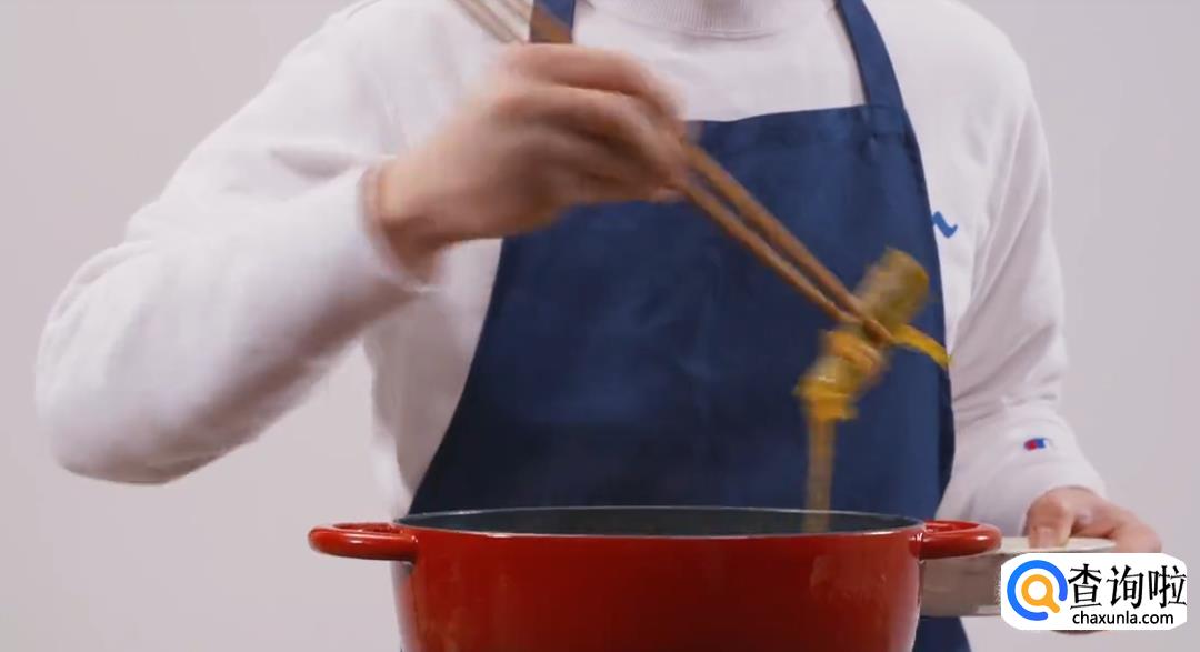 将香料节捞出,然后放入黑胡椒和盐巴,再倒出至铸铁容器中。