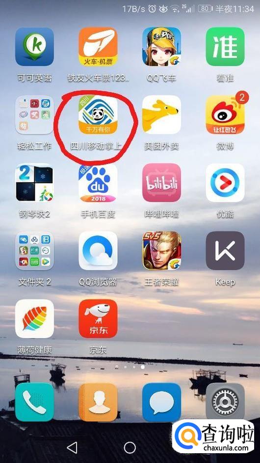 首先点击手机屏幕上的“四川移动掌上营业厅”,如图所示。