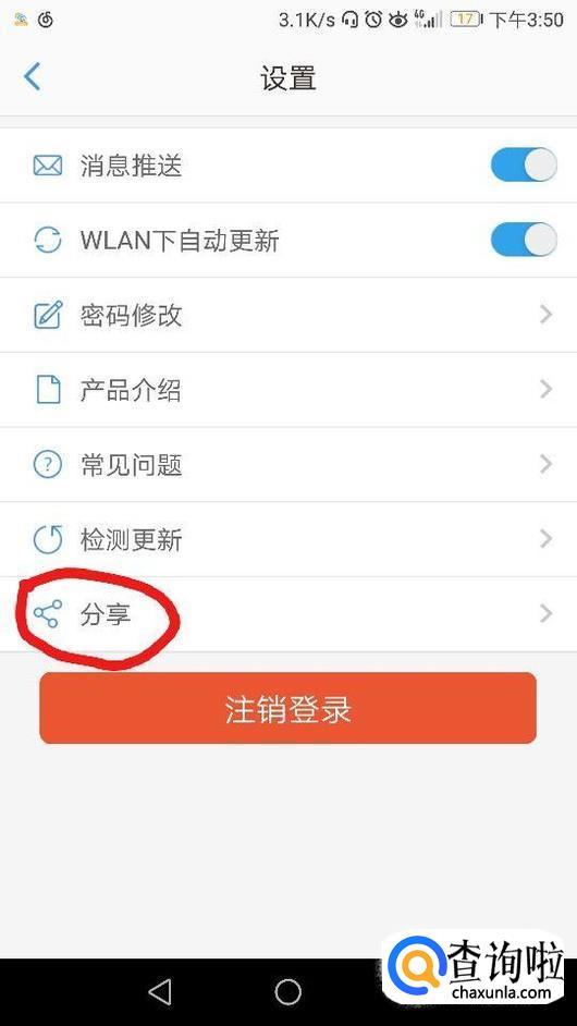 随后点击设置界面中的“分享”,如图所示。