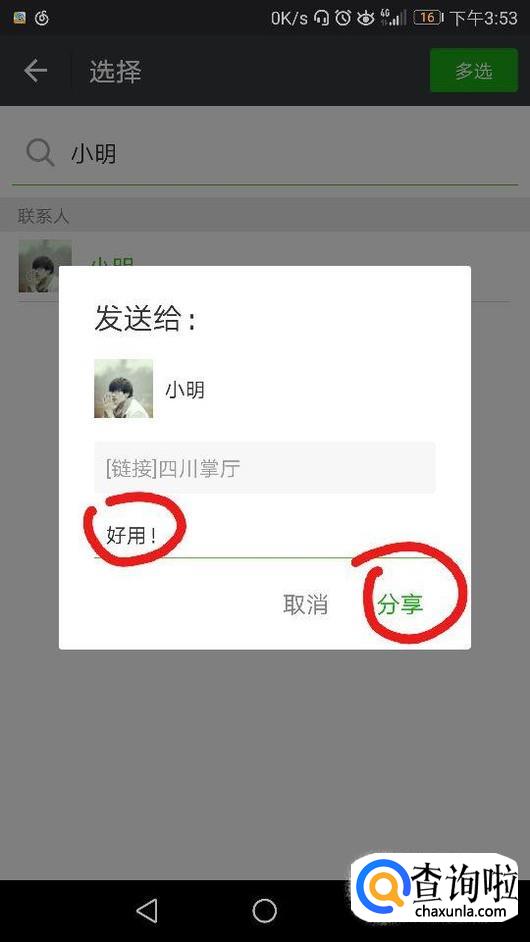 如何将“四川移动掌上营业厅”推荐给微信好友?