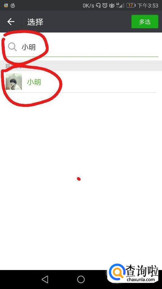随后在微信的搜索栏中输入要分享的好友昵称,点击好友的头像,如图所示。
