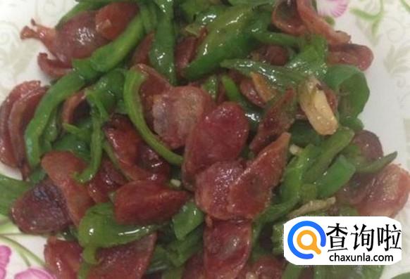 香肠炒辣椒,准备几个大辣椒,洗干净切成小块,香肠也改成小片状,锅中倒入热油,不用加多余的条件,然后先放入香肠,然后炒熟后放入辣椒,加入调料即可。