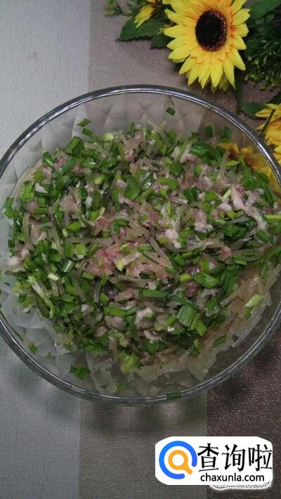 面粉适量,粉条适量,韭菜适量,五花肉适量,盐适量,鸡精适量,味精适量,五香粉适量,生抽适量,酵母粉适量。
