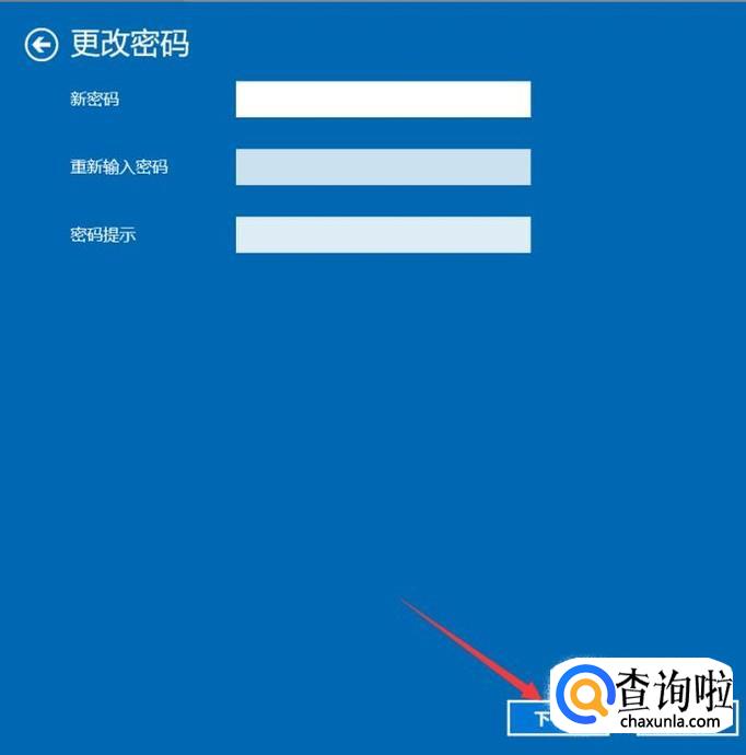 在设置新密码的界面,什么都不需要填写,直接点击下一步