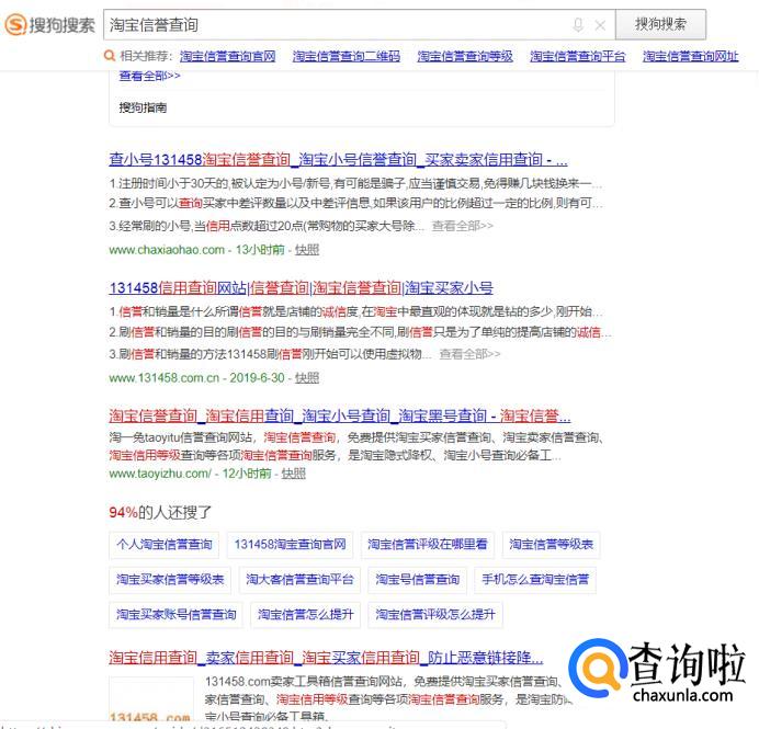 在搜狗搜索中搜索信誉查询。