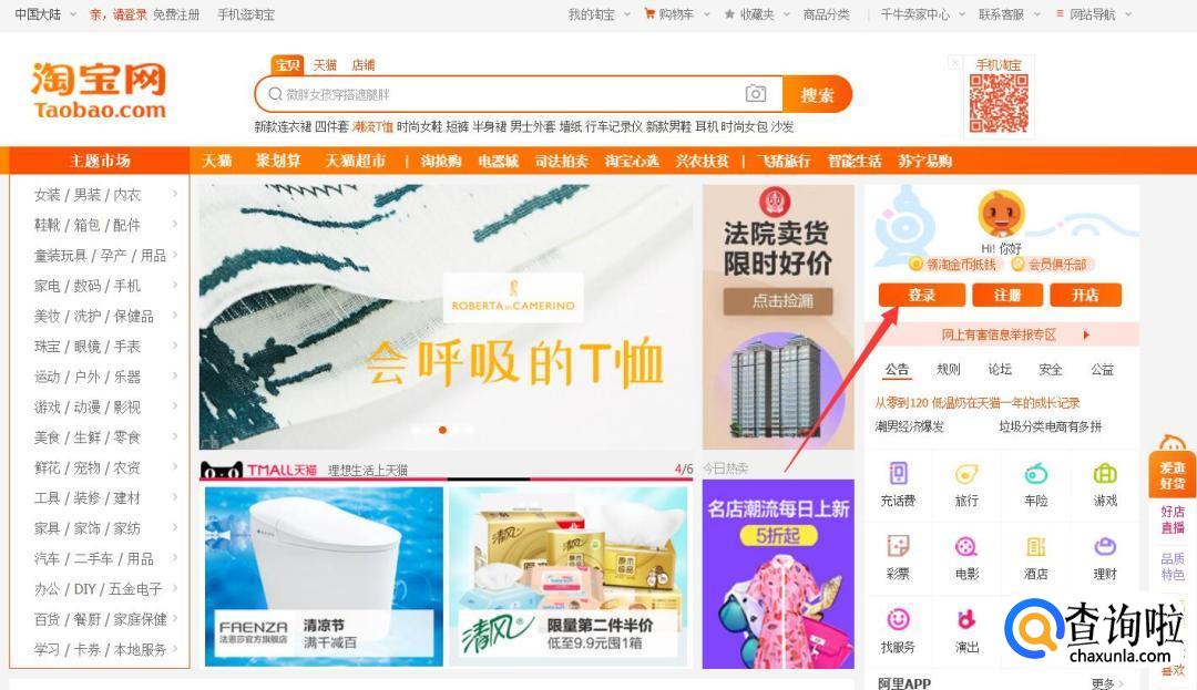 进入淘宝官网登录自己的帐号,并点击头像进入我的淘宝。