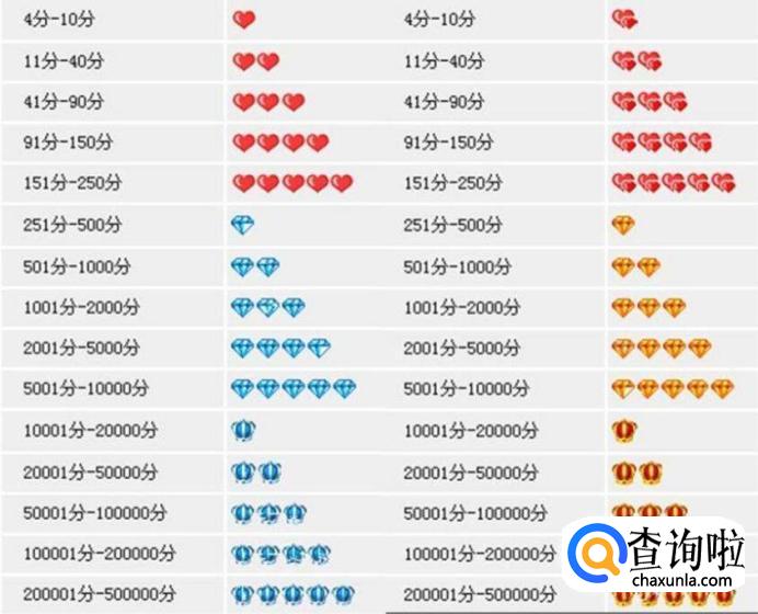 这是一张淘宝官方的等级表,左边是卖家信誉分数,右边是买家信誉分数。