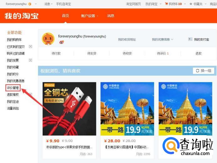 在我的淘宝界面里面点击‘评价管理’。
