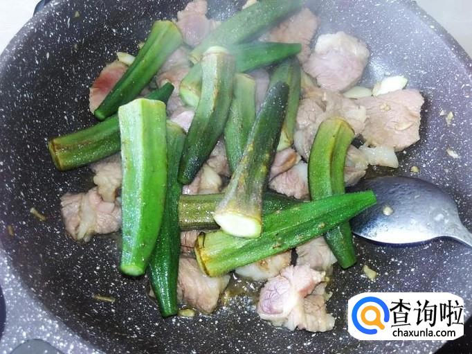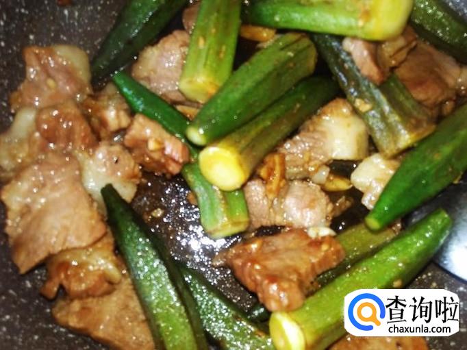 大火翻炒3分钟左右,熄火。非常美味的秋葵炒肉片就做好了。