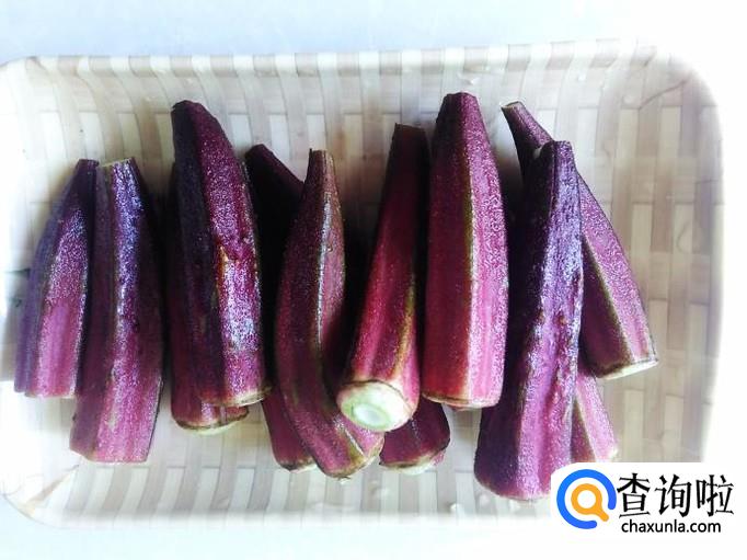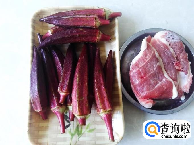 今天买的秋葵是紫红色,卖主说紫红色的比绿色的营养还高,不知是真的还是假的,反正炒出来的味道是一样。秋葵、猪肉、蒜米准备好。