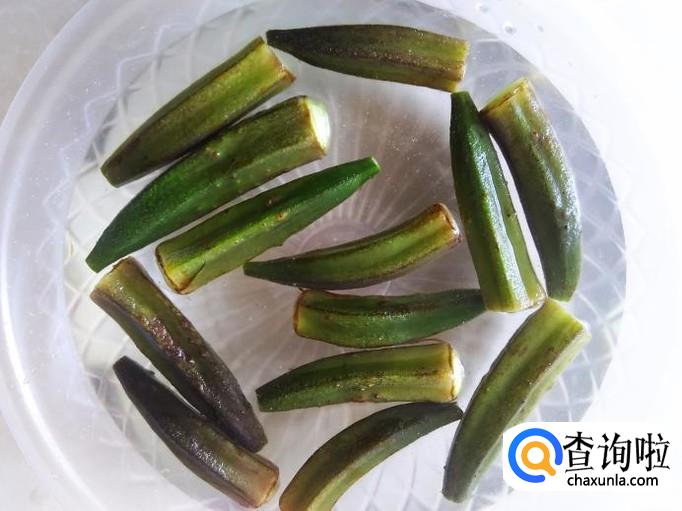 然后把秋葵头尾切掉一点,清洗干净备用。