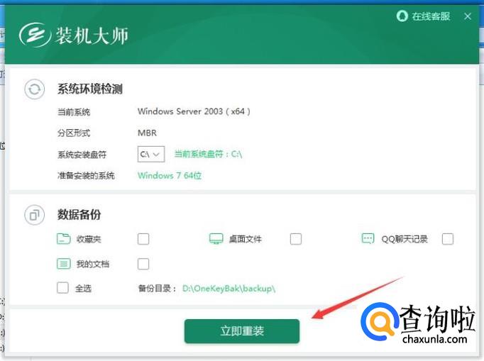 在弹出的软件界面中选择安装的位置,点击【立即重装】