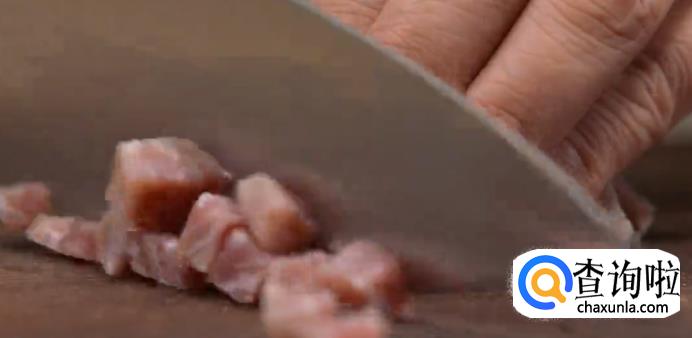 首先将米淘洗干净,将淘米水留下备用,将米放在砂锅中,将莴笋叶摘下,用淘米水浸泡洗净,切碎待用,之后将咸肉洗净切丁,加黄酒浸泡备用。