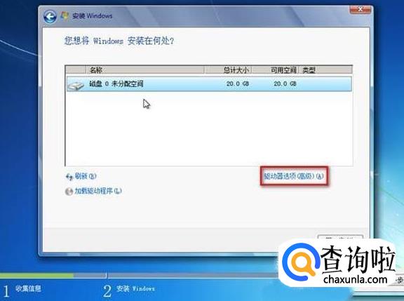 下面选择“驱动器选项(高级)”。
