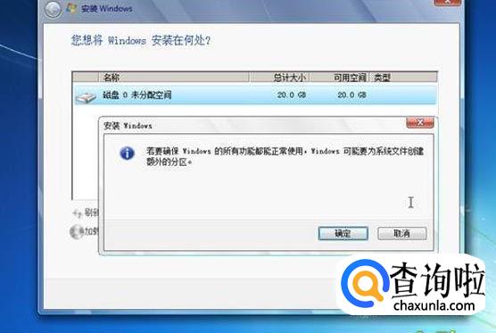 如果是全新的硬盘或者是你删掉所有分区再重新创建,系统就会生成100M来存放启动的引导文件,然后点击“确定”。