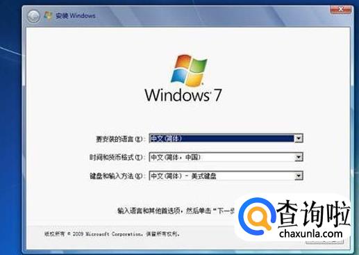 然后一直不用动,到了下面的画面以后,安装的语言选择“中文(简体)”,第二栏里选择“中文(简体,中国)”,“键盘和输入方法”选择“中文(简体)-美式键盘”,接下来点击“下一步”。