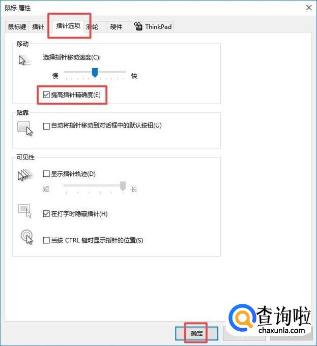 之后,我们点击指针选项,然后我们看看提高指针精准度是否被勾选上了,如果没有的话,将其勾选上,然后点击确定,这样就可以了。