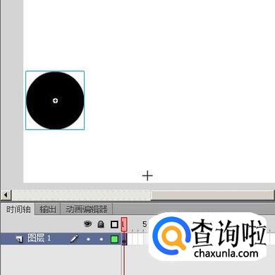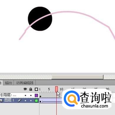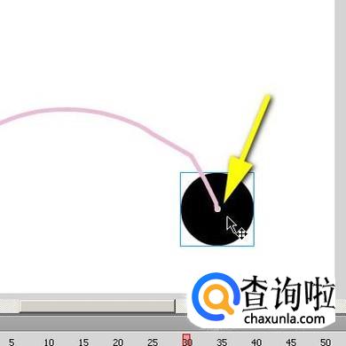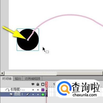 再选择图层1;鼠标点住舞台上的圆,把圆中心点移到引导路径的开始端点这里来。