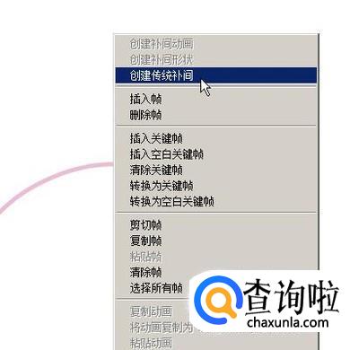接着,选中图层1;鼠标放在时间线这里在第10帧的位置上右击。弹出菜单,点:创建传统补间