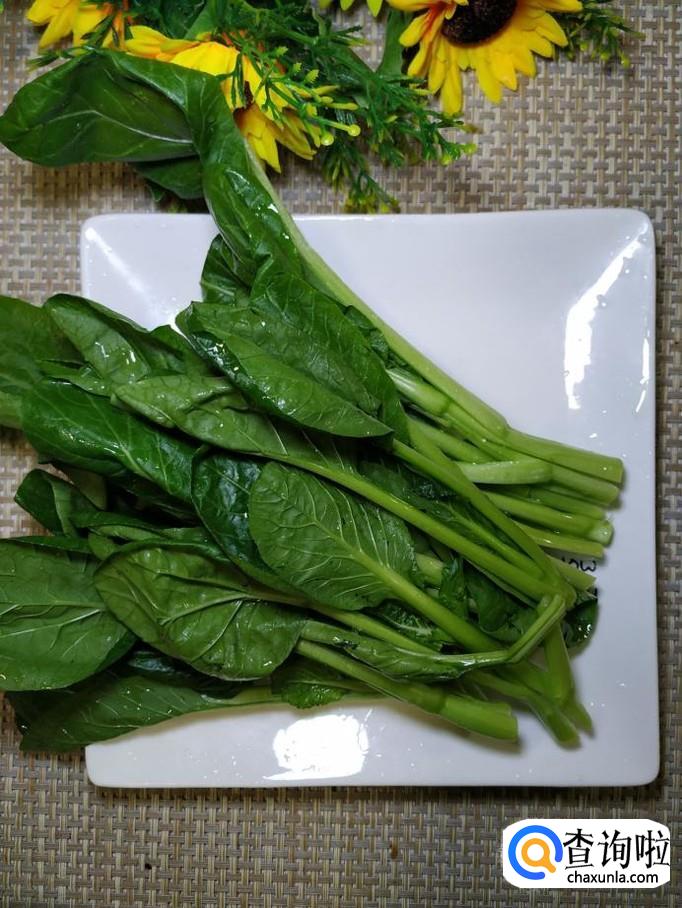准备适量广东菜心,将菜心清洗干净,控干水分,可以将尾端稍微劈开一点,这样方便入味。