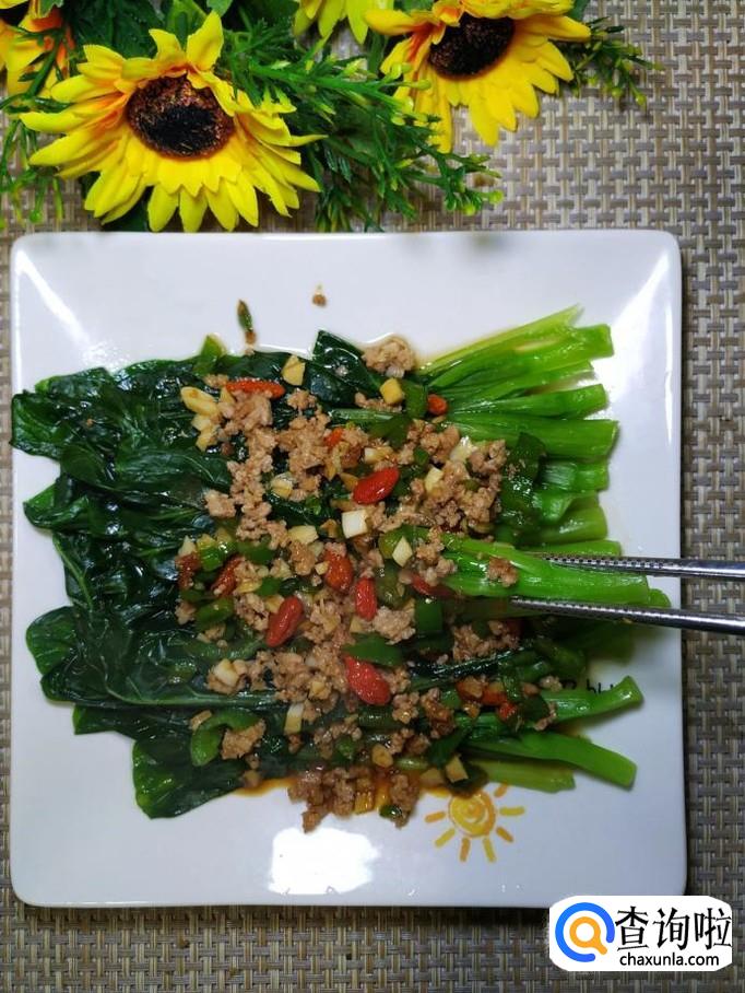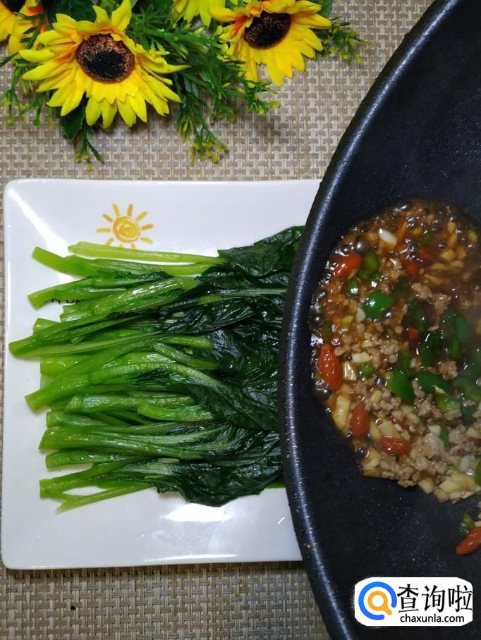 烧开后,趁热浇在菜心上面,搅拌均匀就可以吃了,真的太美味了,家里人都说好吃。
