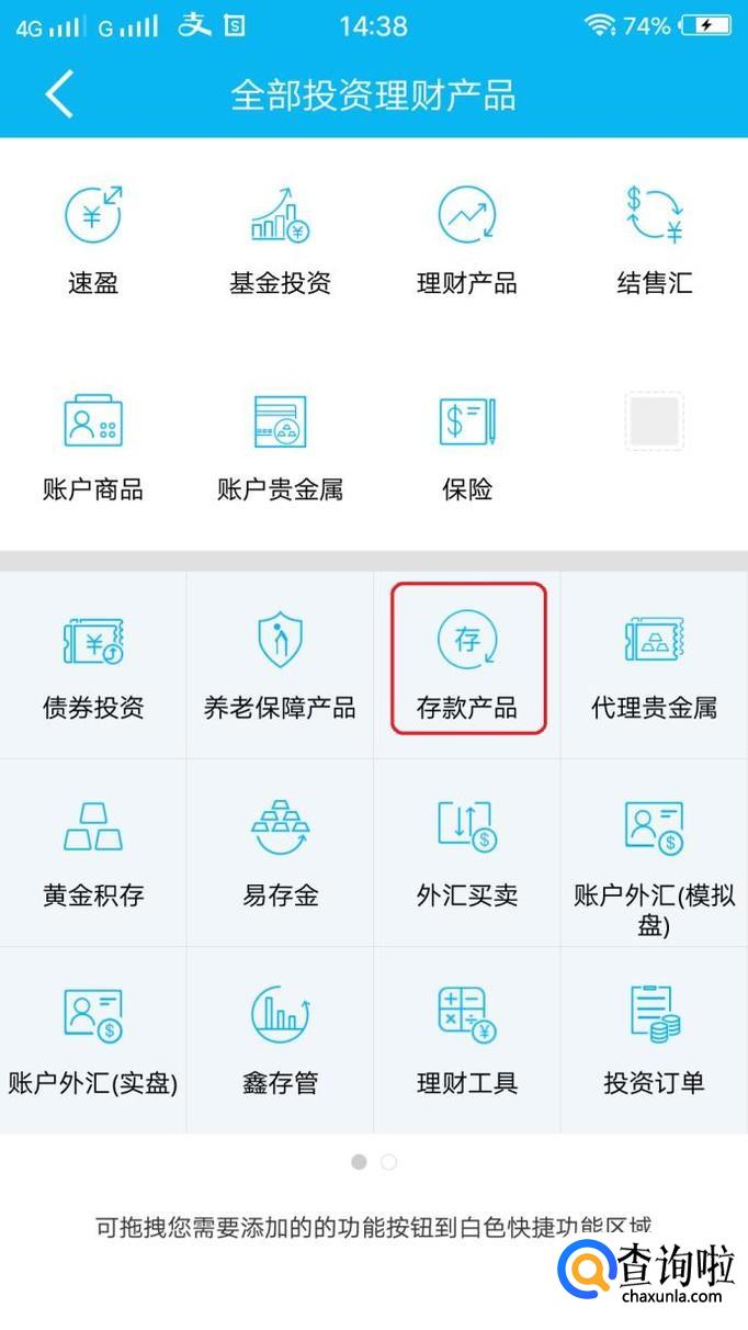 然后,找到“存款产品”图标,点击进入。