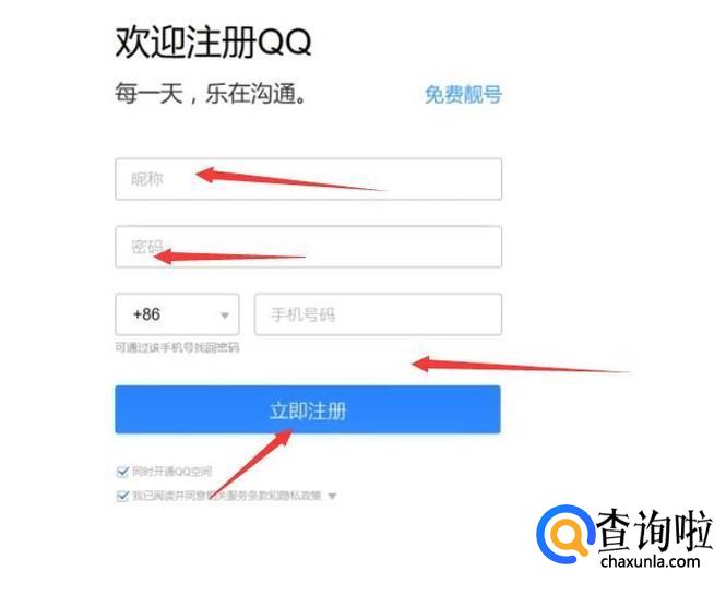 按照提示输入昵称、密码、手机号后点击注册。