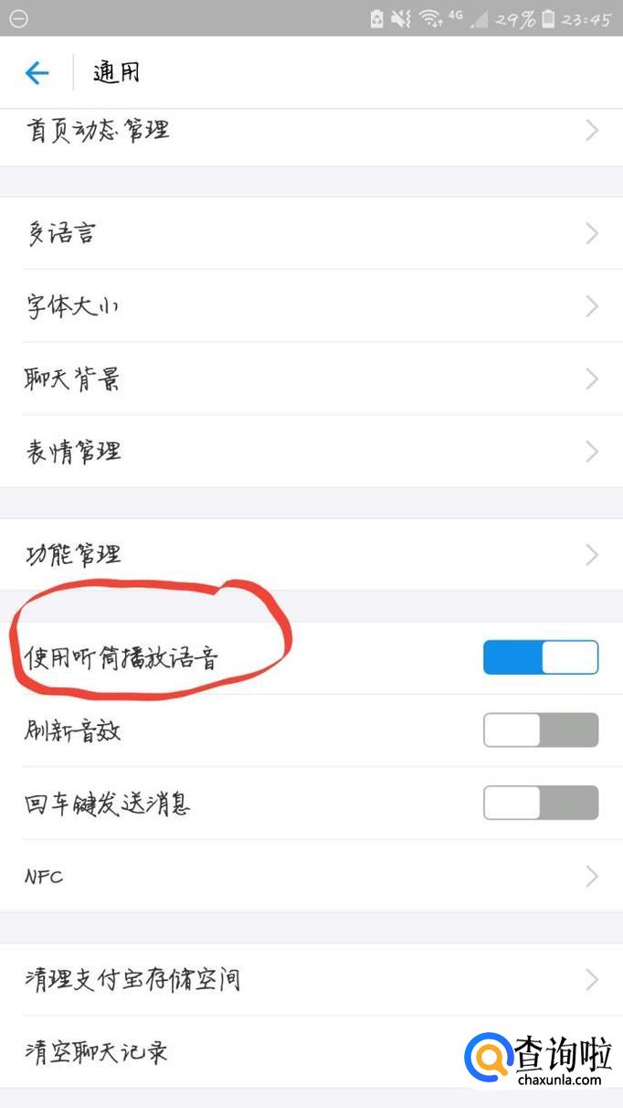 最后,打开“使用听筒播放语音”。
