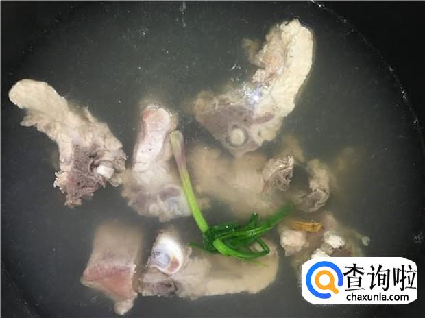 水开后,再把骨头放入锅中,烫几分钟,去掉血水,再捞起来。
