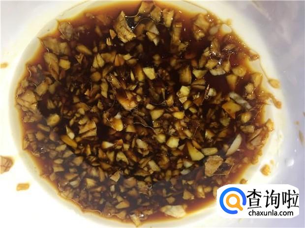 在煮汤的过程中,可以准备一些酱料了。姜蒜一一剁碎,放入碗中,加入适量的花生油、盐、蚝油、酱油,搅拌均匀即可。
