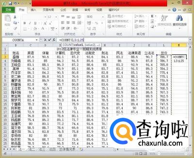 我们以统计总分700分以上的人数为例,在任意空白格中输入函数“=COUNT(”然后可以用鼠标拖选总分700分以上的数据