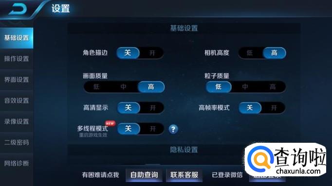 点击设置后,进入基础设置,然后在基础设置中找到自助查询