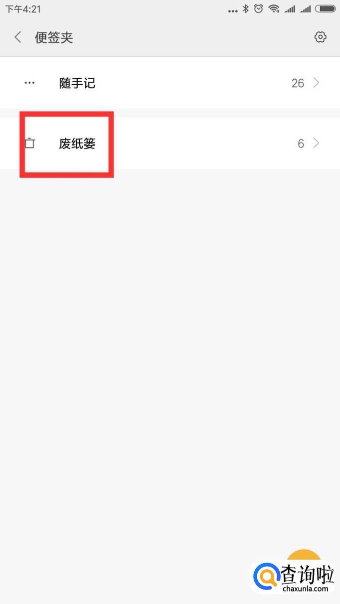 接下来进入下一个界面,里面就有你的便签记录和被删掉的便签了,其中被删掉的便签在废纸篓里面,点击废纸篓。