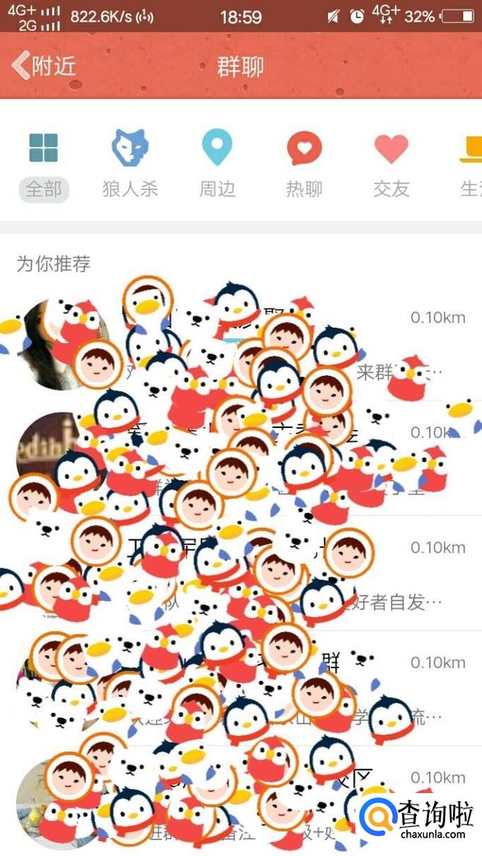 最后再点击左上角的群聊,进入以后就可以查看附近的群了。