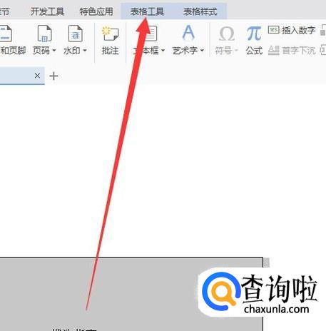选中表格之后,点击“表格工具”,如图所示。